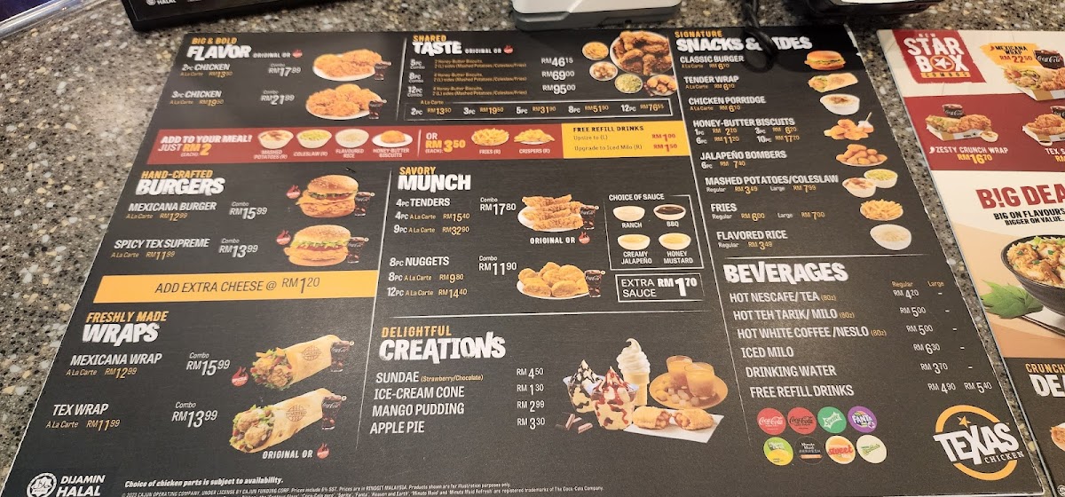 Texas Chicken also offers bottomless soft drinks, making it a great spot to relax while indulging in flavorful burgers and wraps. Despite minor service hiccups, the eagerness to enhance the dining experience shines through.